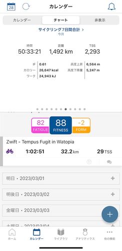 ▪️ zwift流し 1:30 68TSS 今日のガーミンウォッチお勧めメニューは ベース130w-90分 素直に従ってみるか。。。 低強度でも脚を回し続けるって何気にジワジワと 脚にくるので90分は楽じゃ無い。 ローラーだけど体幹とフォームを意識して 腰がぶれない様にする…